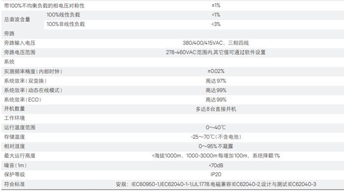 输出功率因数最高可达1,带载能力大幅增强超前及滞后全负载范围内,提供100%容量输出,无需降额
